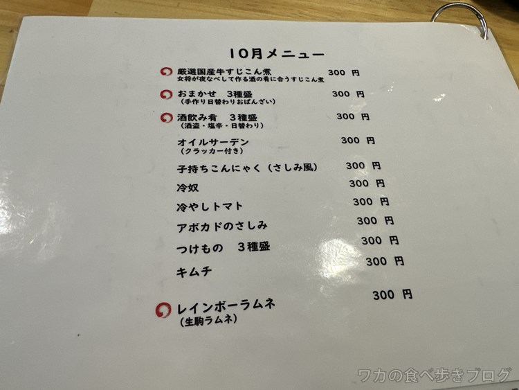 おつまみメニューは300円~