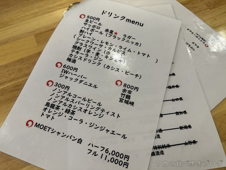 メニューの一部、 お酒メニューもっとありますん