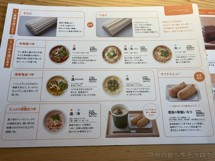 韓国冷麺800円 とろろ黒つゆ780円 くるみ白つゆ700円 いなり300円