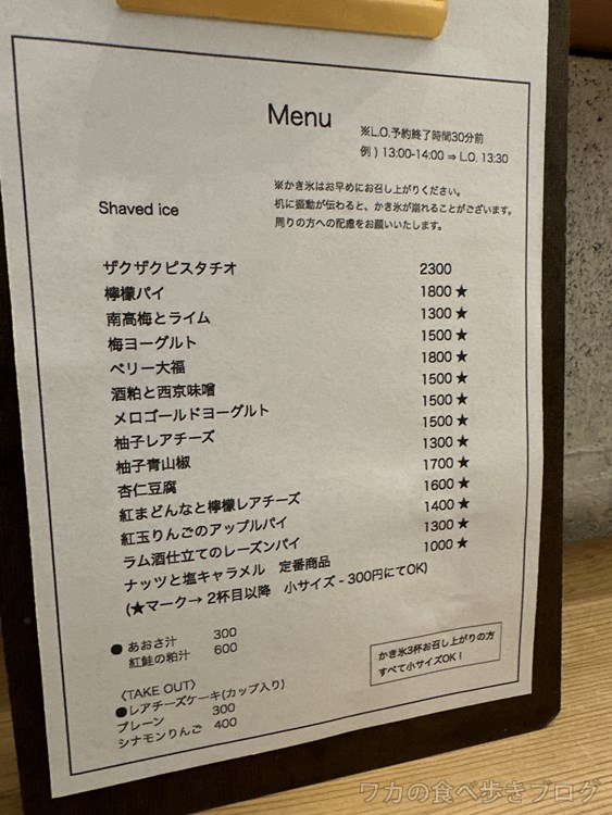 予算:氷約1500円 ディナー約18000円 HP:コチラ MAP:コチラ 駐車場なし