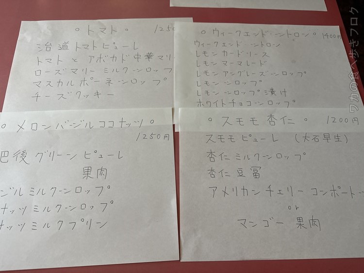 基本的に、中華かき氷、洋菓子かき氷、あと季節物って感じにしてるみたいです