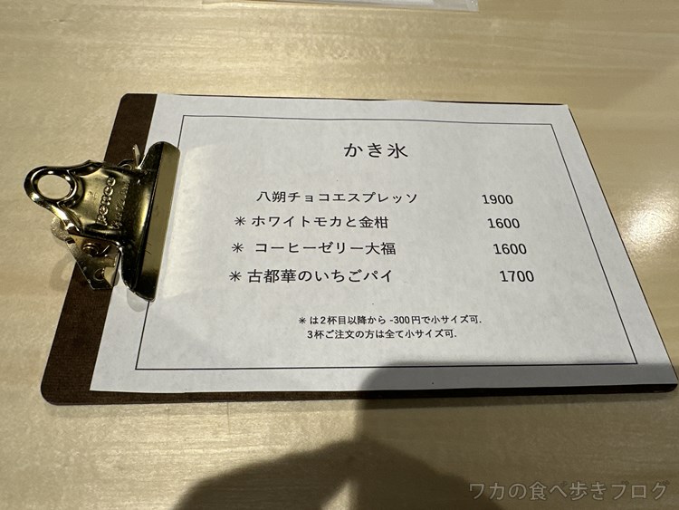 宿雨さんは品数控えめなのと、珈琲系シロップ使ったのがほとんど。