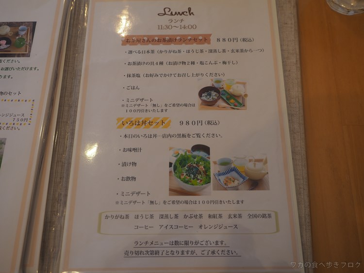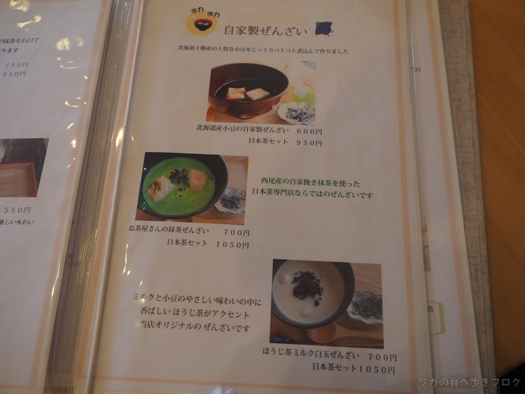 メニュー。日本茶カフェらしく和なメニューが色々♪