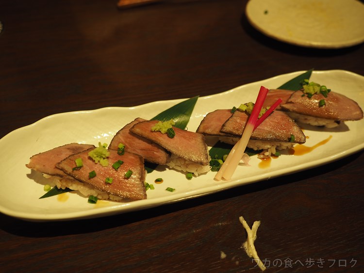ローストビーフ寿司 2ケ 110円(写真は2人前4ケ)
