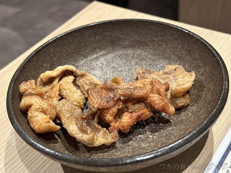 お通しの鳥皮、カリカリサクサク(・∀・)