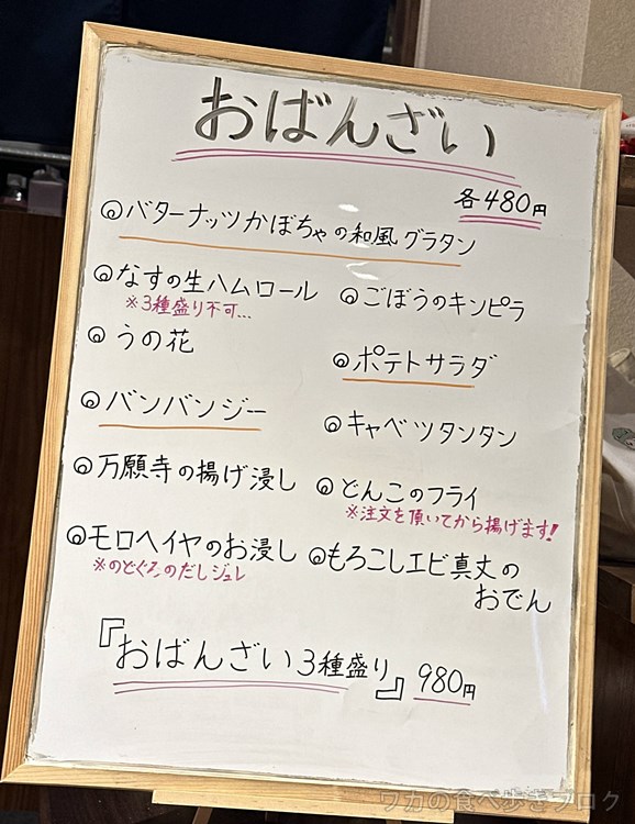 カウンターにあったカレーオクラチクワ、もろこし海老真丈のおでん、ばんばんじー