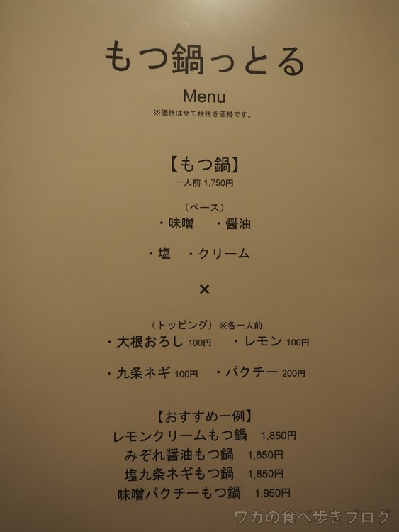 もつ鍋はベースが4種類、、、それぞれ合いそうなトッピングも