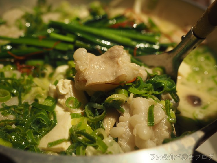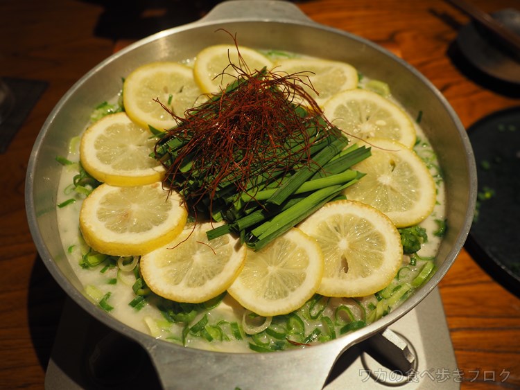 レモンが広がるもつ鍋(*´∀`*)キレイ