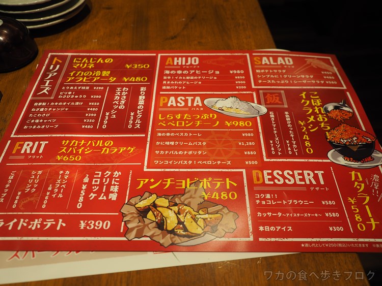 海鮮物のカルパッチョから、焼き、揚げ、洋食やら色々と