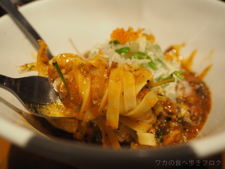 鰻とボロネーゼで甘みの引き立ったソースがしっかり絡んで(゚∀゚)ウマー