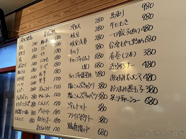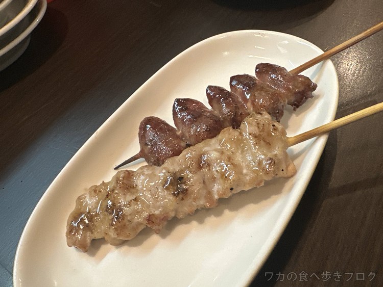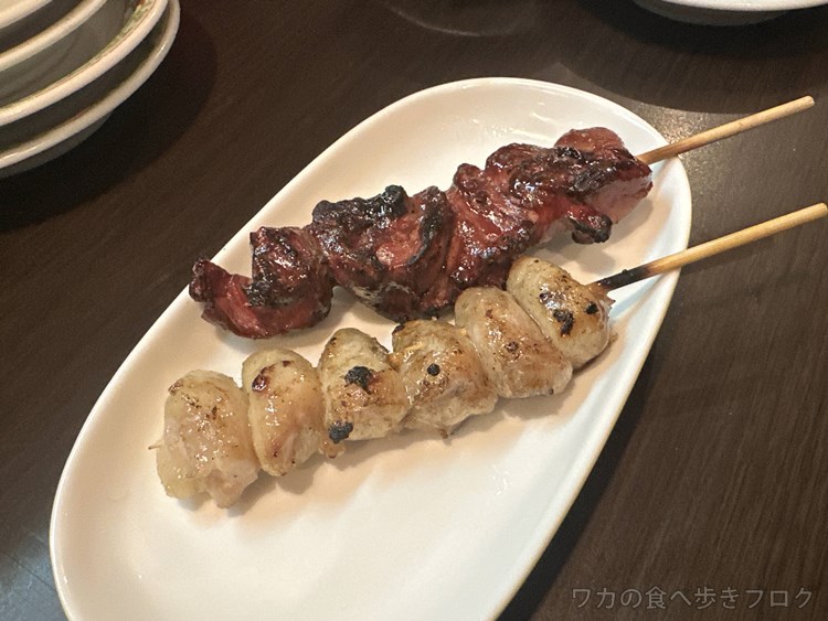 焼鳥の砂肝、もも、レバー、せせり、ハツ、ぼんじり