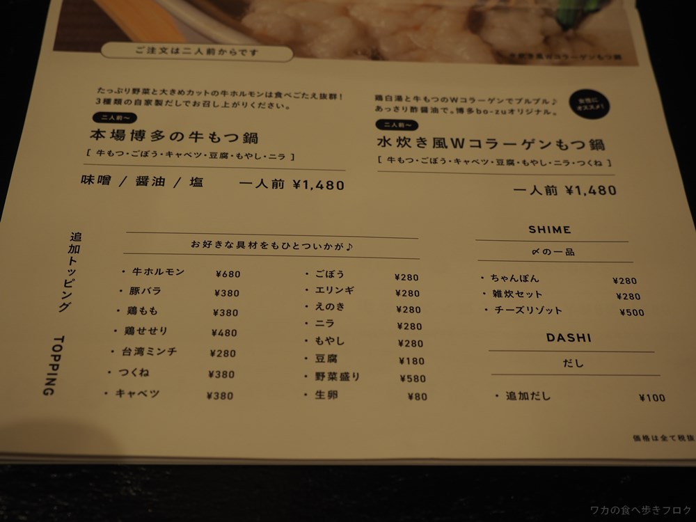 もつ鍋は2人前からの注文