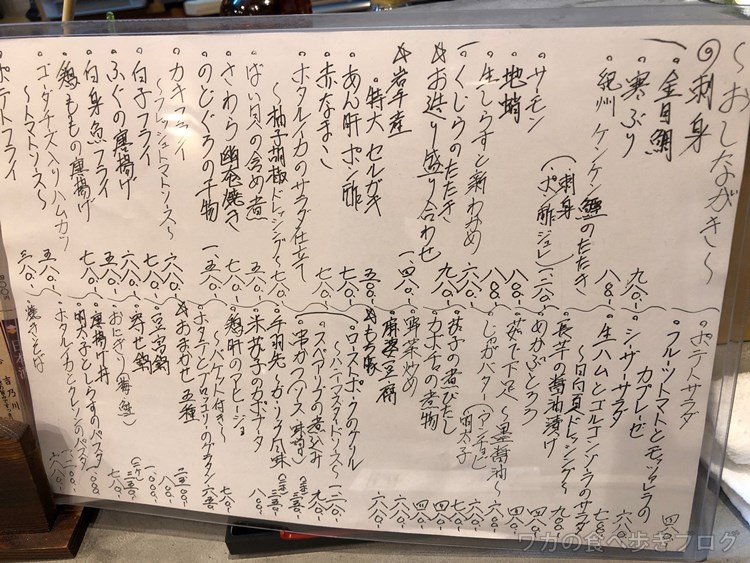 お刺身におつまみ系、豚のメイン系やパスタ、カポナータとか洋食も・・・