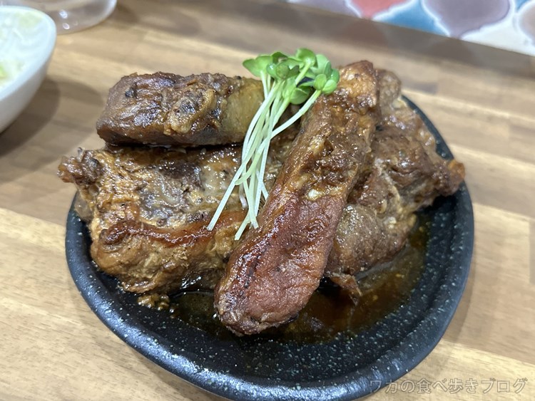 骨付きのスペアリブ、ほろっと骨から外れ、柔らかで美味しい(*´ω`*)