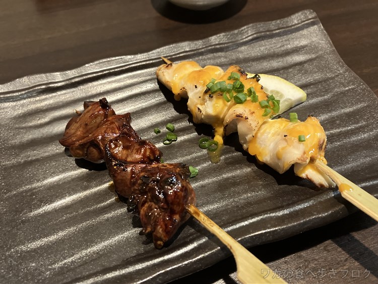 ねぎま、砂肝、生姜巻き、うに焼き、レバーだったかな?
