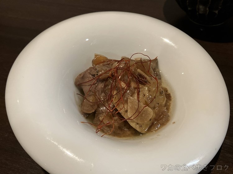 にんにく効いたオイルで、しっとりとしたレバー