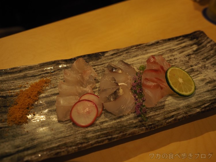 白身のお刺身、〆てあるので食感が程好く食べやすい♪