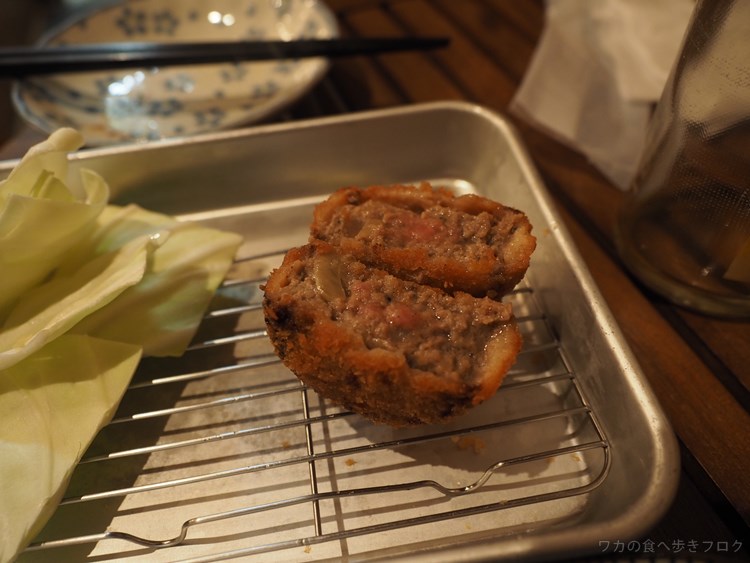 中がミディアムレア~な感じに仕上がったメンチカツ・・・