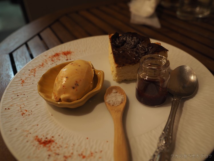 濃厚なチーズケーキでまったりとした甘さ、岩塩も合う♪