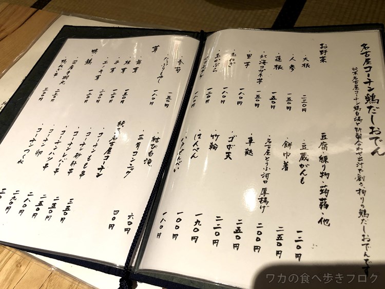 おでんを中心に、名古屋コーチン、刺身やおつまみなどなど
