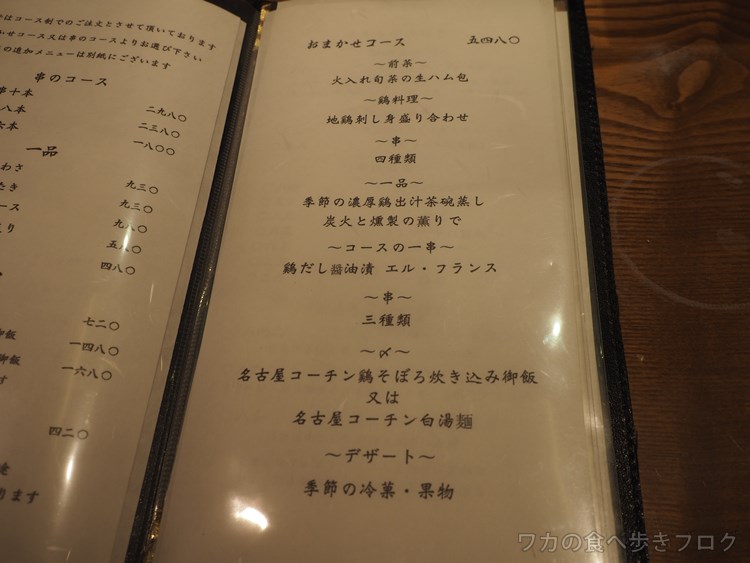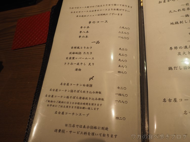 串のコースは2000~5500円くらいがベースで、そこに追加していく感じ