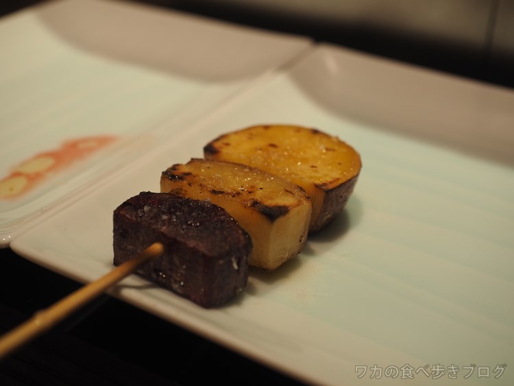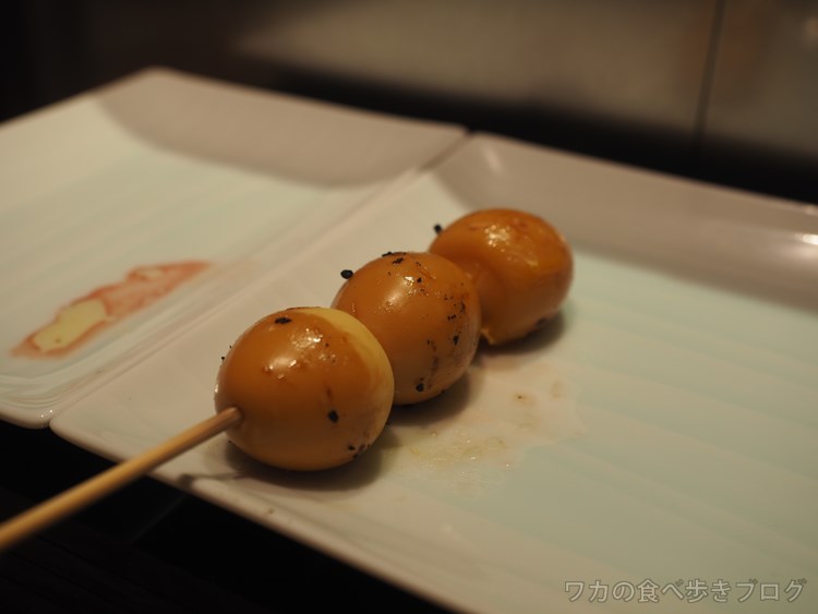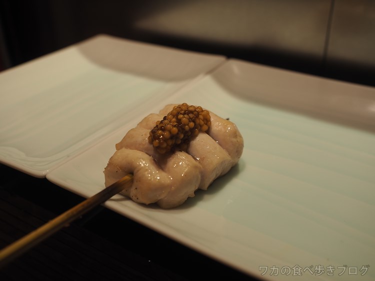 コースの1串:鶏出汁醤油漬け エルフランス