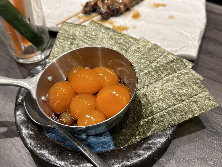 海苔で挟んで食べると、プチッと弾けて濃厚な卵黄と醤油の味わい