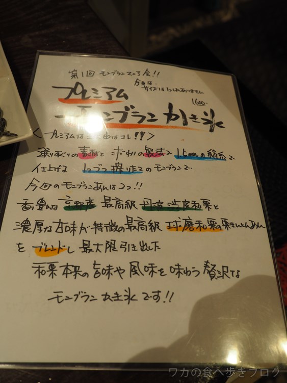 この日はモンブラン氷会ってことで、メニュー一つのみ