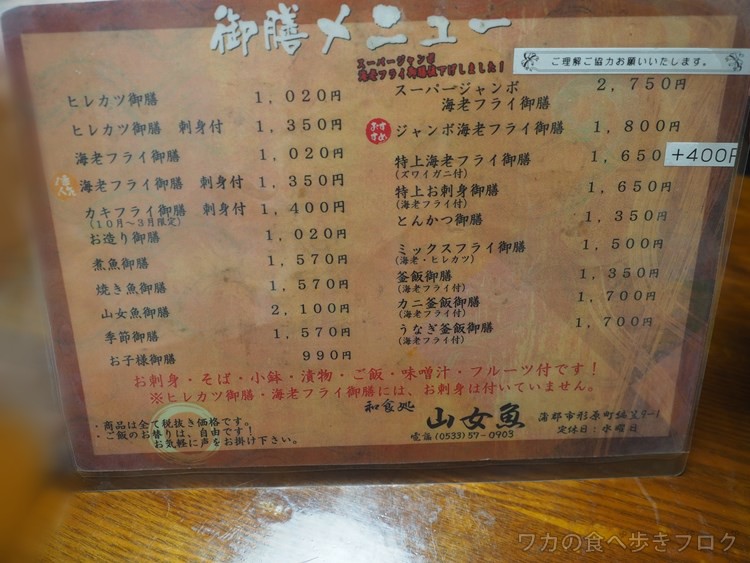 他の席見てたら、普通に特上かジャンボかの海老フライ御膳も