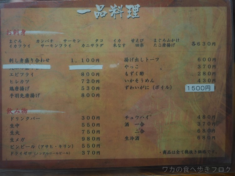 他にもズワイガニ1500円とかワタリガニ700円とかあったので
