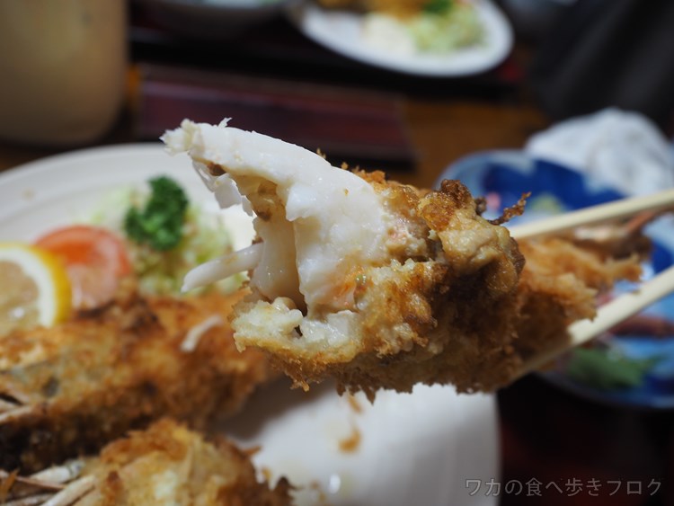巷の大きく長くなるよう調理したエビフライと違って、分厚いっ