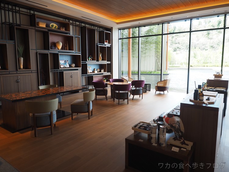少し下がった中央のソファは宿泊者専用らしいです。