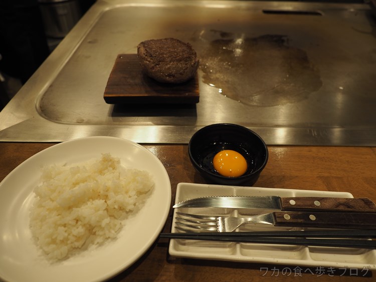 ライスも注文、卵黄とタレはハンバーグ用の。