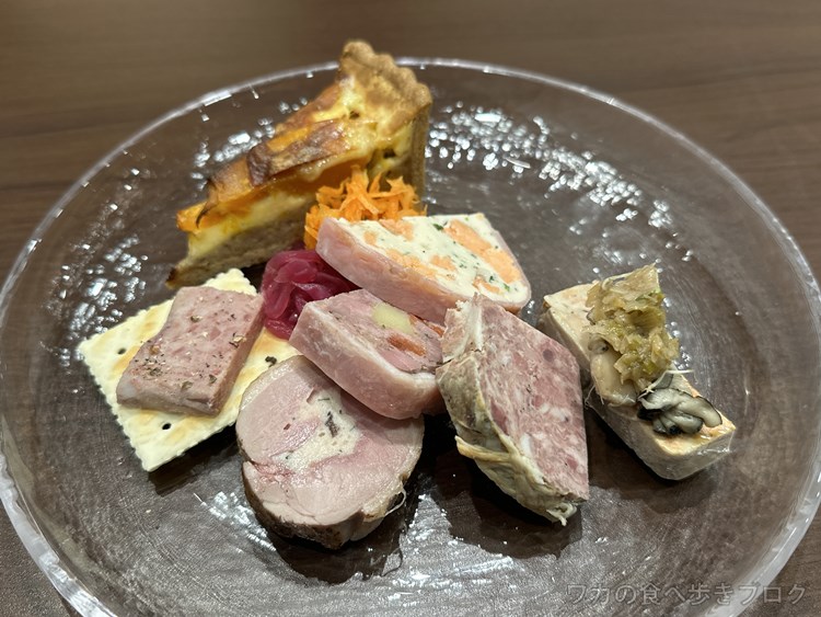 南瓜とミンチのキッシュに、クラッカーは牛のコンビーフ乗せ、