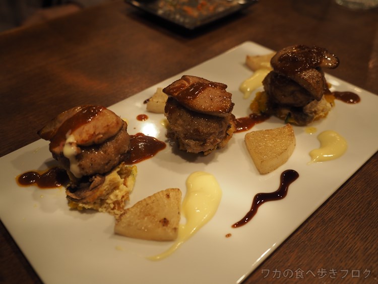 一口で肉汁とフォアグラの甘みがジュワァ~っと旨し(`・ω・´)