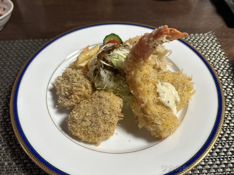 ホタテ→海老→ヒレカツ 最後につけ合わせ
