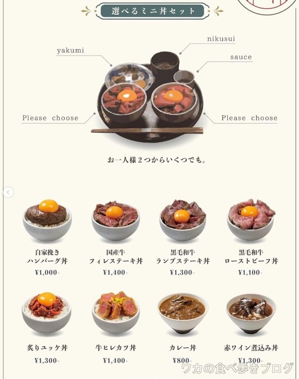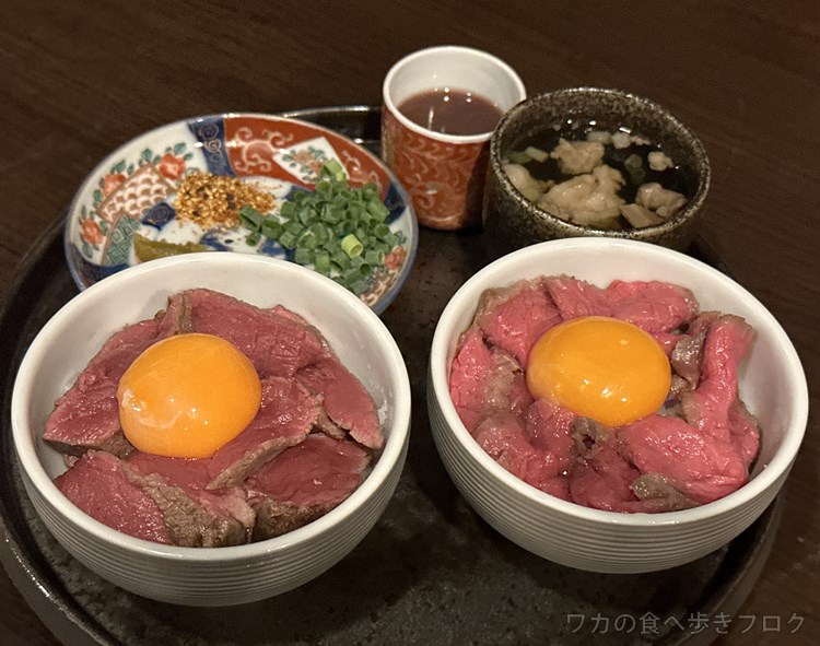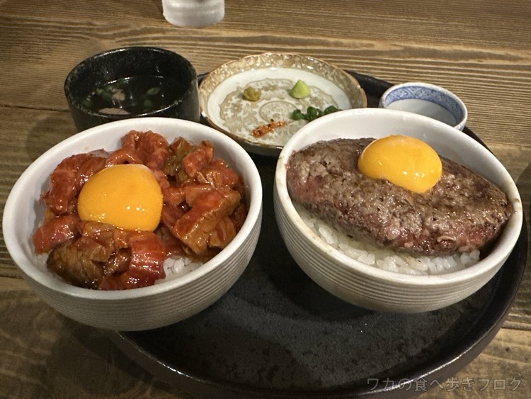 炙りユッケ丼1300円 & ハンバーグ丼1000円