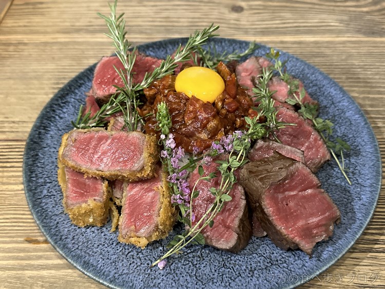 牛カツ、ヒレステーキ、サーロイン、ローストビーフ、炙りユッケ