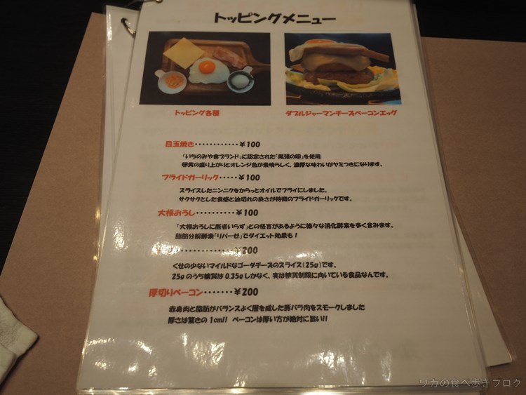 チーズ200円、目玉焼き100円、ベーコン200円 トッピング