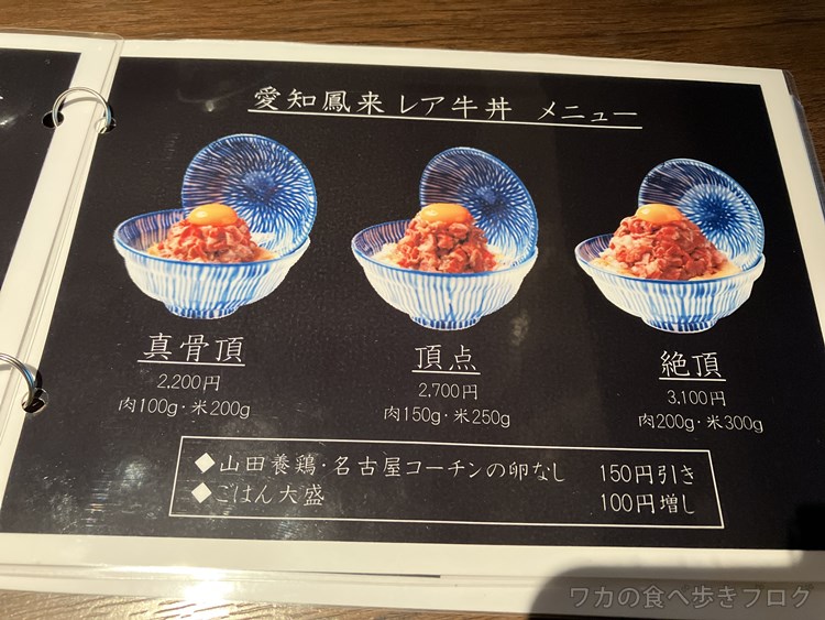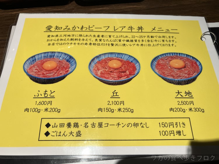 レア牛丼のお店なので、肉質の違いで、色々。