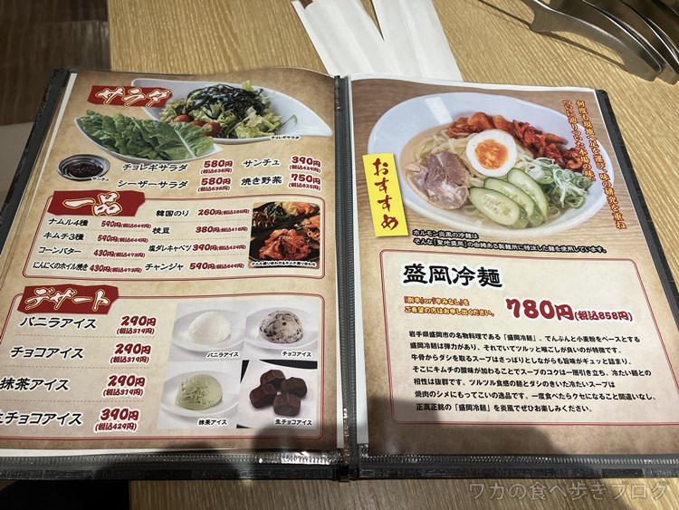 店員さんの説明的には、ホルモンと冷麺おすすめっぽい。