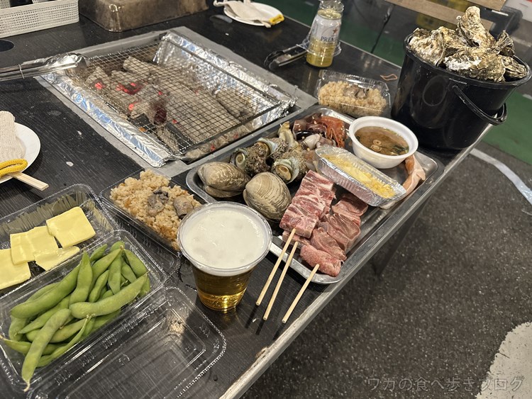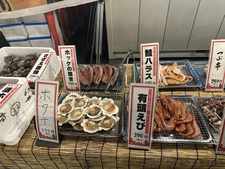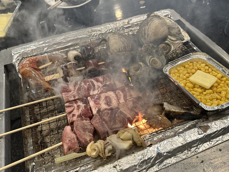 セルフで好きなの取っていって、会計してから焼き始める感じ