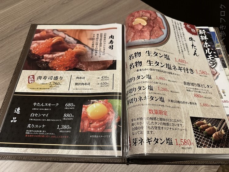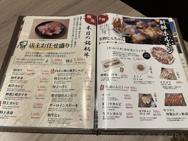 おまかせ盛りとかじゃなくて、ホルモンやサイドメニューも気になるし