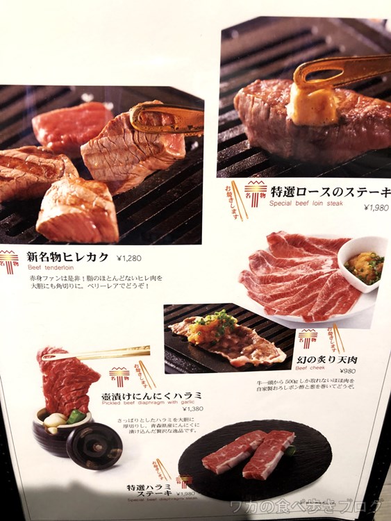 厚切り生タン、特選ロース、特選ハラミステーキ、上ヒレ