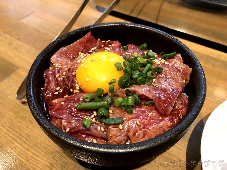 おひとりさまなので、肉めしにユッケとカルパッチョとか