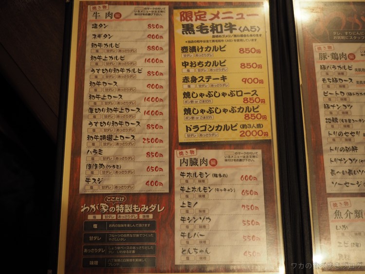 メニュー、この日は赤身な気分だったので、赤身ステーキ。。。