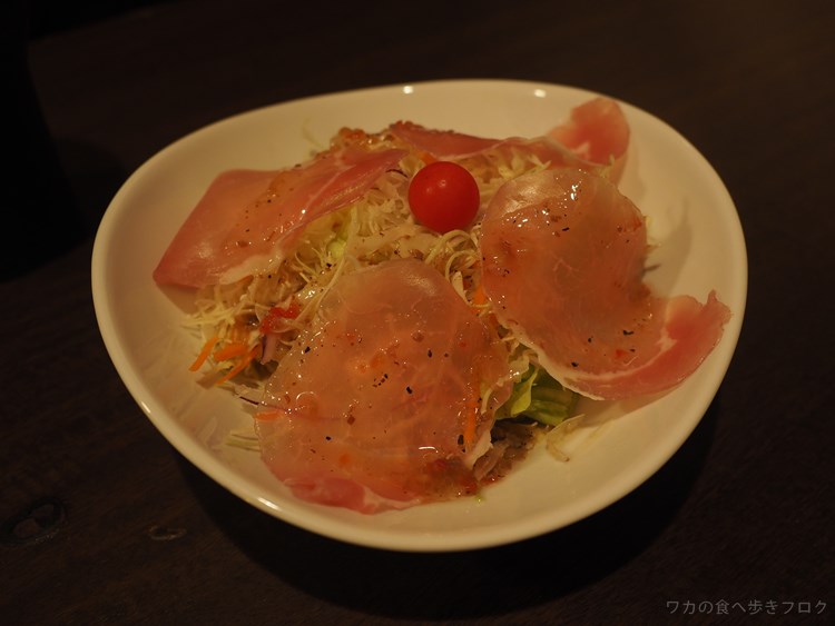 生ハムのなめらかな舌触りと塩気がサラダにも合う♪