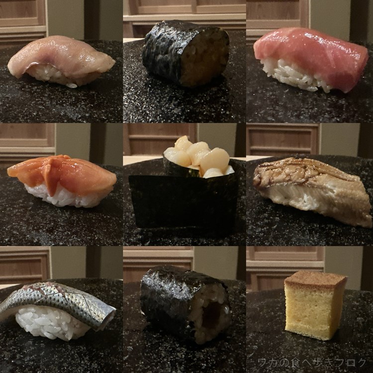 赤貝、貝柱、穴子ふゎっふゎっ、コハダ?、ねぎとろ(撮り忘れ)、かんぴょう、玉子