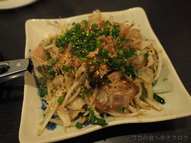 シャキシャキもやしと豚肉、塩ダレにねぎと鰹節って・・・旨いでそ(・∀・)