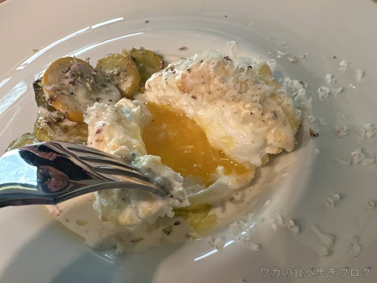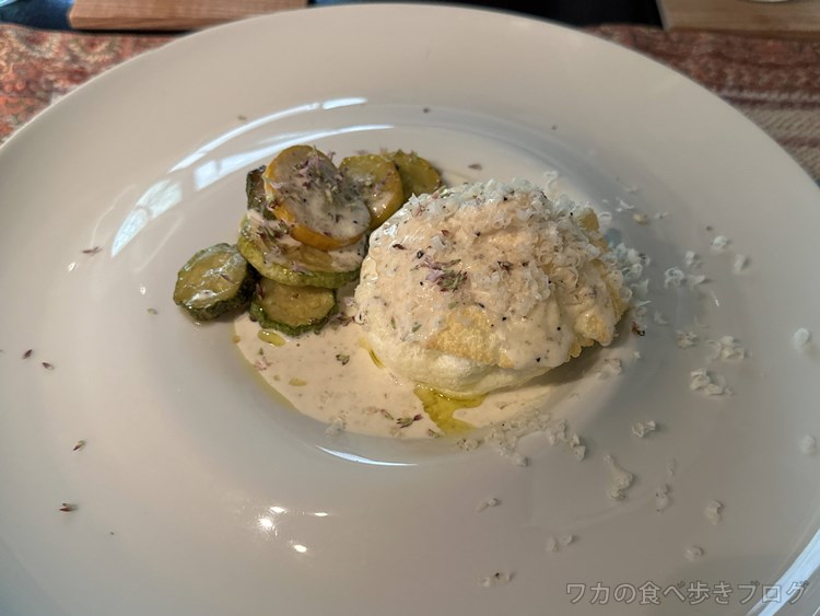玉子の料理、黒トリュフを練り込んだチーズ ズッキーニ